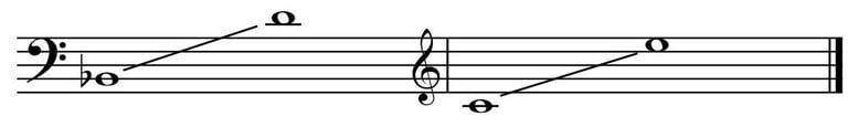 Limited range, approximately one octave: Bb2 to Bb3. One year of instruction. Limited rhythmic/technical requirements. No note value greater than quaver (eighth note). no syncopated rhythms. Music of a tonal nature.