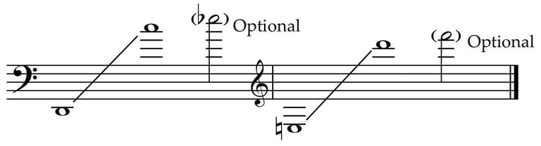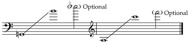 Range approximately Bb1 to C5. Higher advanced tessitura. Increased rhythmic complexity/multimetric. Angular melodic lines. Dissonant harmonies/contemporary harmonies. Endurance factors. Introduction to avant-garde techniques (flutter tongue, multiphonics etc). Double and triple tonguing. Dynamic control and extremes.